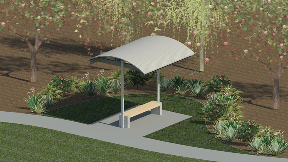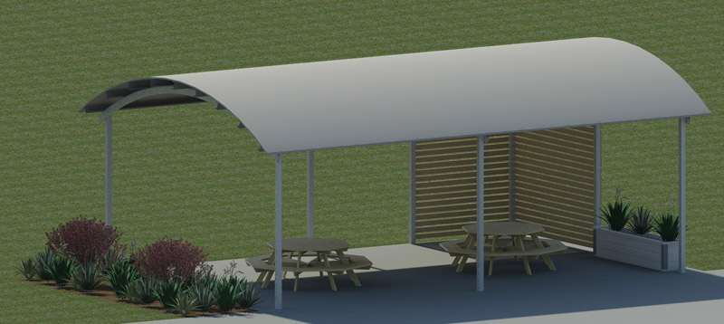 Multiple units will create various focal points for people to gather under shade or out of the weather in key areas.