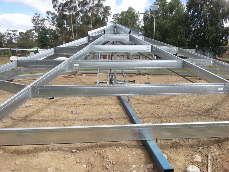 We supply steel kits with All Gal SHS posts with galvanised steel frames made with C Sections or optional box beams to stop any potential bird nesting issues.